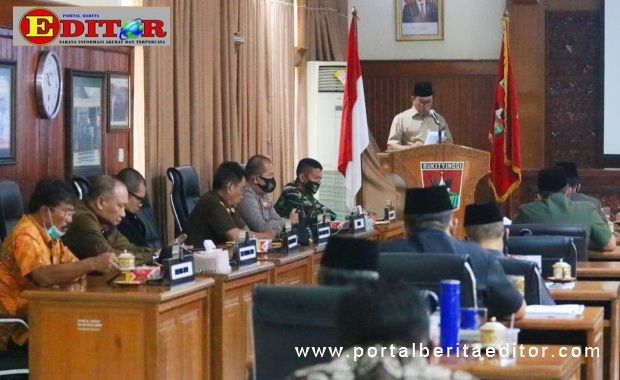 Bukittinggi, Editor.- Wako Bukittinggi M. Ramlan Nurmatias sampaikan nota Rancangan Perubahan Kebijakan Umum APBD (KUA) dan Perubahan Plafon Anggaran Sementara (PPAS) Tahun Anggaran 2020 pada Rapat Paripurna DPRD Kota Bukittinggi, Kamis (13/08).