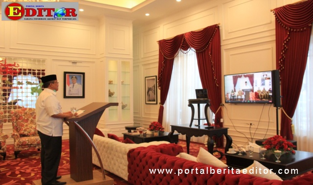 Arosuka, Editor.- Bupati Solok H. Gusmal, SE, MM sampaikan orasi ilmiah pada acara Dies Natalis Sekolah Tinggi Agama Islam (STAI) Solok Nan Indah ke-23 secara virtual, Senin (14/9) di Guest House Arosuka.