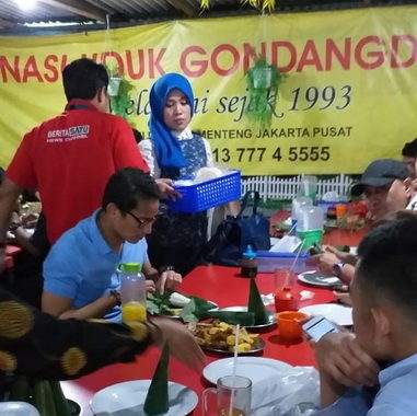 Meski papan nama dan bangunan warung nasik uduk sederhana di Jalan Gondangdia, Jakarta pusat ini takmenonjol, namun tidaklah menyurutkan minat para pemburu nasi uduk untuk menikmati sajian khasnya. Apalagi warung ini setiap hari buka sampai malam hari, sehingga warung ini ramai disambangi pembeli. Bahkan orang -orang hebat di DKI Jakarta, seperti Sandiaga Uno, Gubernur Anies Baswedan para pejabat, maupun orang kantoran dan masyarakat di sekitar kawasan terebut.