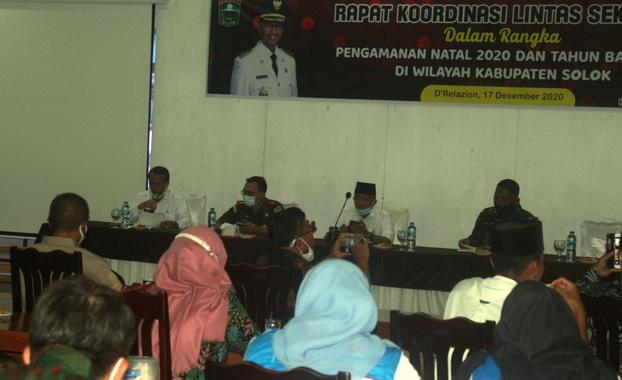 Arosuka, Editor.- Pemerintah Kabupaten Solok melaksanakan rapat koordinasi Lintas Sektoral dalam rangka Pengamanan Natal 2020 dan Tahun Baru 2021 Di Kabupaten Solok, Kamis (17/12) bertempat di D Relazion.