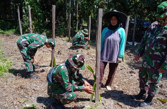 Satgas TMMD kunjunngi budidaya tanaman buah naga yang dilakukan Emi di Talang aur.