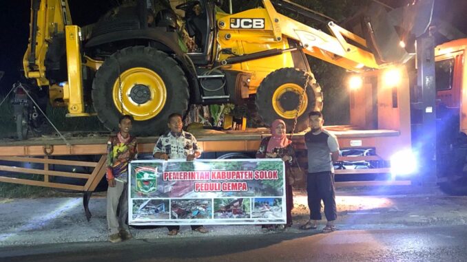 Melihat kondisi tersebut, Bupati Solok Epyardi Asda memerintahkan jajarannya segera turun ke lokasi memberikan bantuan. Sebagai daerah yang juga rawan bencana, Epyardi memahami yang dibutuhkan di daerah bencana. Ia menugaskan dinas PUPR untuk menurunkan langsung satu unit exscavator jenis backhoe loader.