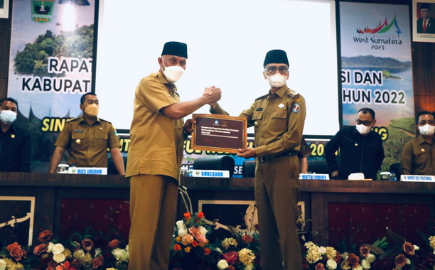 Penyerahan itu berlangsung di sela-sela acara pembukaan Rapat Koordinasi Pemerintah Provinsi, Kabupaten/ Kota se Sumatera Barat, di Aula Bappeda, Tua Pejat, Kabupaten Kepulauan Mentawai, Selasa (08/03/2022).