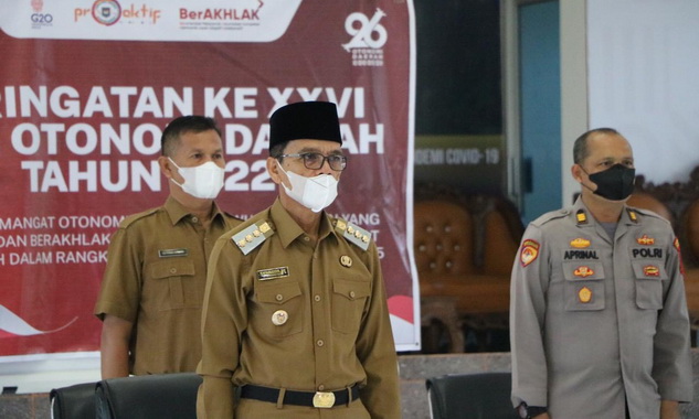 Hal itu disampaikan Bupati Limapuluh Kota Safaruddin Dt.Bandaro Rajo didampingi Sekretaris Daerah Widya Putra dan Asisten I Herman Azmar serta unsur Forkopimda setelah menghadiri Peringatan Hari Otonomi Daerah Tahun 2022 secara virtual di Aula Kantor Bupati Limapuluh Kota Sarilamak, Senin (25/04/2022).