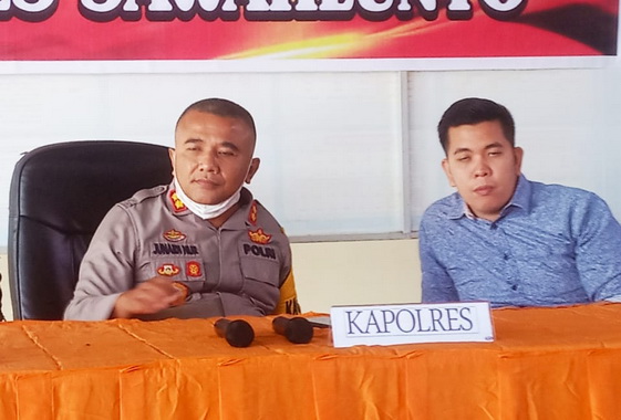 Kapolres Sawahlunto AKBP Junaidi Nur, SH, SIK dan Kasat Reskrim IPTU Roy S.P Sinurat, STK, SIK ungkapkan disaat Press Relase, Rabu 24/2/2021.