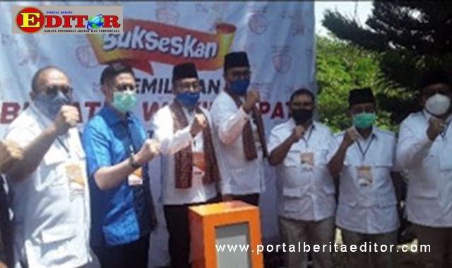 Batusangkar,Editor.- Tiga Orang anggota DPR-RI yaitu Fadlizon Wakil Ketua DPP Partai Gerindra,Andre Rosiade Ketua DPD Partai Gerindra Sumbar dan Mulyadi Ketua DPD Partai Demokrat Sumbar mengantarkan Pasangan Calon Bupati Tanah Datar Eka Putra, SE dan Richi Aprian, SH.MH mendaftar ke Komisi Pemilihan Umum Tanah Datar Sabtu (5/9)