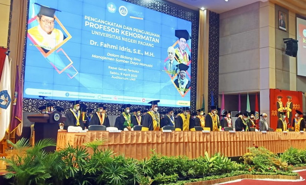 Sebelum dilantik dan dikukuhkan, Fahmi Idris terlebih dahulu menyampaikan orasi Ilmiahnya yang berjudul “Penguatan Humanistic Management Model Dalam Organisasi Bisnis”, dengan Sub Tema “Meraih Kesuksesan Dengan Memanusiakan Manusia” dalam rapat Senat Terbuka Civitas Akademika Universitas Negeri Padang.
