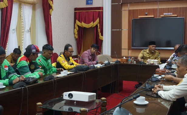 Padang, Editor.- Gubernur Sumatera Barat, Mahyeldi, menerima audiensi dari sejumlah perwakilan ojek online (ojol) yang tergabung dalam Driver Online Sumbar Bersatu (DOSB) beraudiensi di ruang rapat Istana Gubernuran, Senin (10/10/2022).