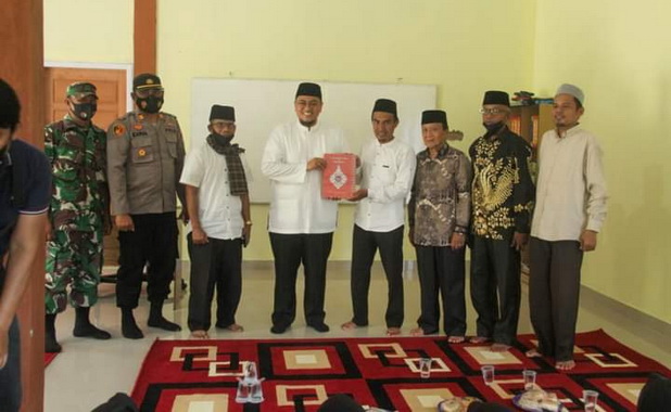 Wabup Richi Aprian saay menyerahkan bantuan Al Qur'an.