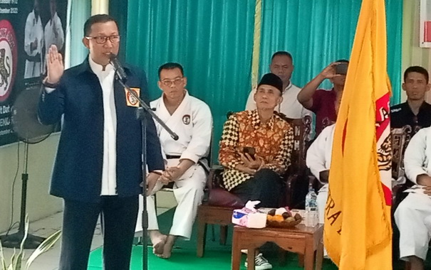 Padang Pariaman, Editor.- Ketua Umum Pengprov Lemkari (Lembaga Karate-Do Indonesia) Sumatera Barat, Yozarwardi, S.Hut, MSi membuka Gashuku Nasional dan Ujian Kenaikan Sabuk Hitam/Yudansha di Aula INS Kayu Tanam, Jln Raya Padang Bukittinggi Km 53. Kecamatang 2×11 Kayu Tanam Kabupaten Padang Pariaman, Jum’at (16/9/2022). Dia ingin semakin banyak Dojo di usia 50 Tahun perguruan Lemkari ini di Kabupaten/kota.