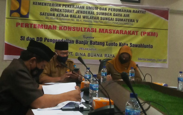 Sawahlunto, Editor,- Kementerian Pekerjaan Umum dan Perumahan Rakyat Direktorat Jenderal Sumber Daya Air Balai Wilayah Sungai Sumatera V Padang, melaksanakan Pertemuan Konsultansi Masyarakat (PKM) atas Kegiatan Survey Investigasi (SI) dan Détailed Design (DD) Pengendalian Banjir Batang Lunto Kota Sawahlunto, yang dilaksanakan oleh PT. Bina Buana Raya sebagai Konsultan Teknik, di Balai Kota Senin, 12 April 2021.