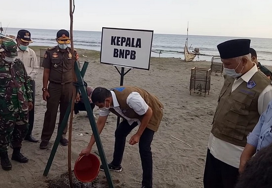 Pariaman,Editor.- Kepala BNPB (Badan Nasional Penanggulangan Bencana), Letjen Doni Monardo kunjungi Pantai Desa Taluak, Kecamatan Pariaman Selatan, Kota Pariaman Sumbar, Rabu (14/4/2021)