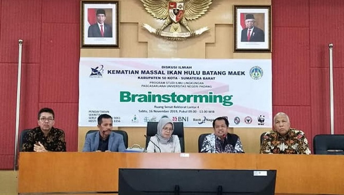 Padang, Editor.- Tingginya perhatian mahasiswa Program Studi S2 dan S3 Ilmu Lingkungan, Pascasarjana Universitas Negeri Padang (UNP) tentang kasus kematian massal ikan di Batang Maek, akhirnya mereka menyelengarakan Diskusi Ilmiah, Sabtu (16/ 11), yang dilaksanakan di Ruang Senat UNP Kampus Air Tawar Padang.