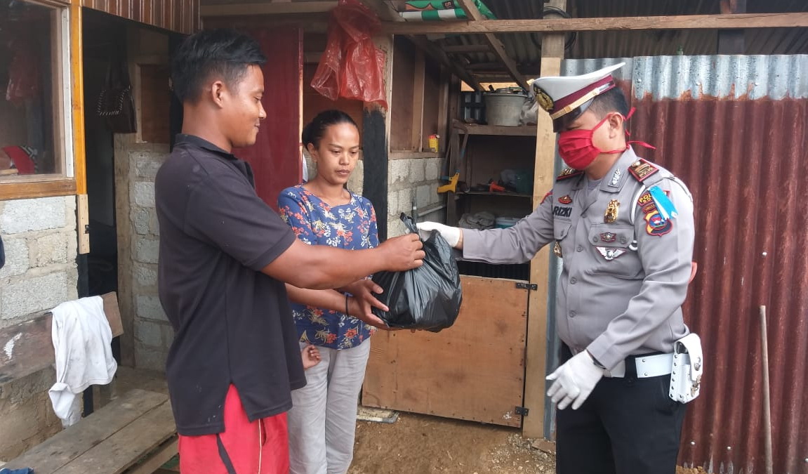 Peduli Dampak Covid-19, Satlantas Polres Arosuka Bagikan Sembako