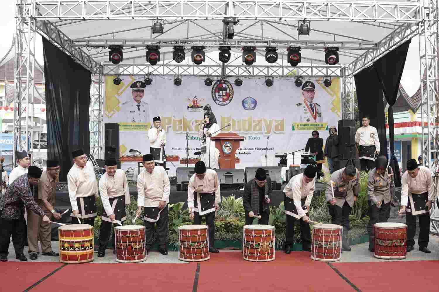 Limapuluh Kota, Editor.- Pemukulan Gandang Tambua oleh Gubernur Sumatera Barat yang diwakili Kepala Dinas Kebudayaan Sumbar, Syaifullah bersama Bupati Limapuluh Kota Safaruddin Dt.Bandaro Rajo dan unsur Forkopimda, menandai dimulainya Pekan Budaya Kabupaten Lima Puluh Kota tahun 2023.
