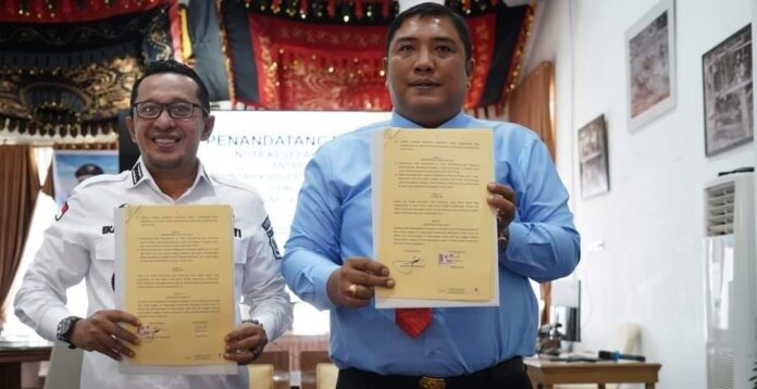 Nota kesepakan tersebut ditandatangai oleh Bupati Eka Putra SE, MM dengan Kajari Tanah Datar Anggiat AP Pardede, SH, MH. R.Penanda tanganan Nota Kesepakatan antara Pemerintah Kabupaten Tanah Datar dengan Kejaksaan Negeri Tanah Datar itu turut dihadiri Sekretaris Daerah, Asisten Sekretariat Daerah beserta Kepala Organisasi Perangkat Daerah (OPD) dan Pejabat Daerah lingkup Pemkab Tanah Datar.