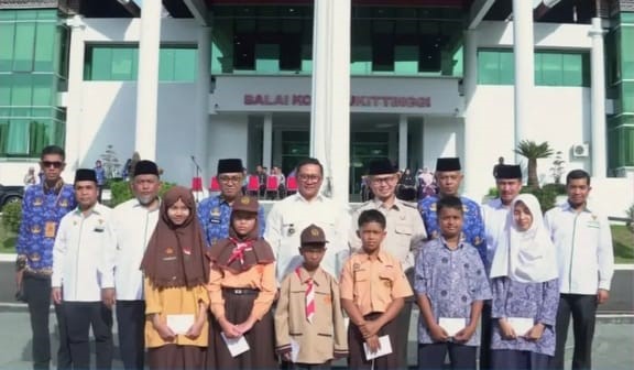 Bukittinggi, Editor.- Sejumlah siswa SD dan SMP, MI dan MTsN di Kota Bukittinggi, menerima bantuan berupa zakat pendidikan dari Pemerintah Kota Bukittinggi dan Badan Amil Zakat Nasional (BAZNAS) Kota Bukittinggi.