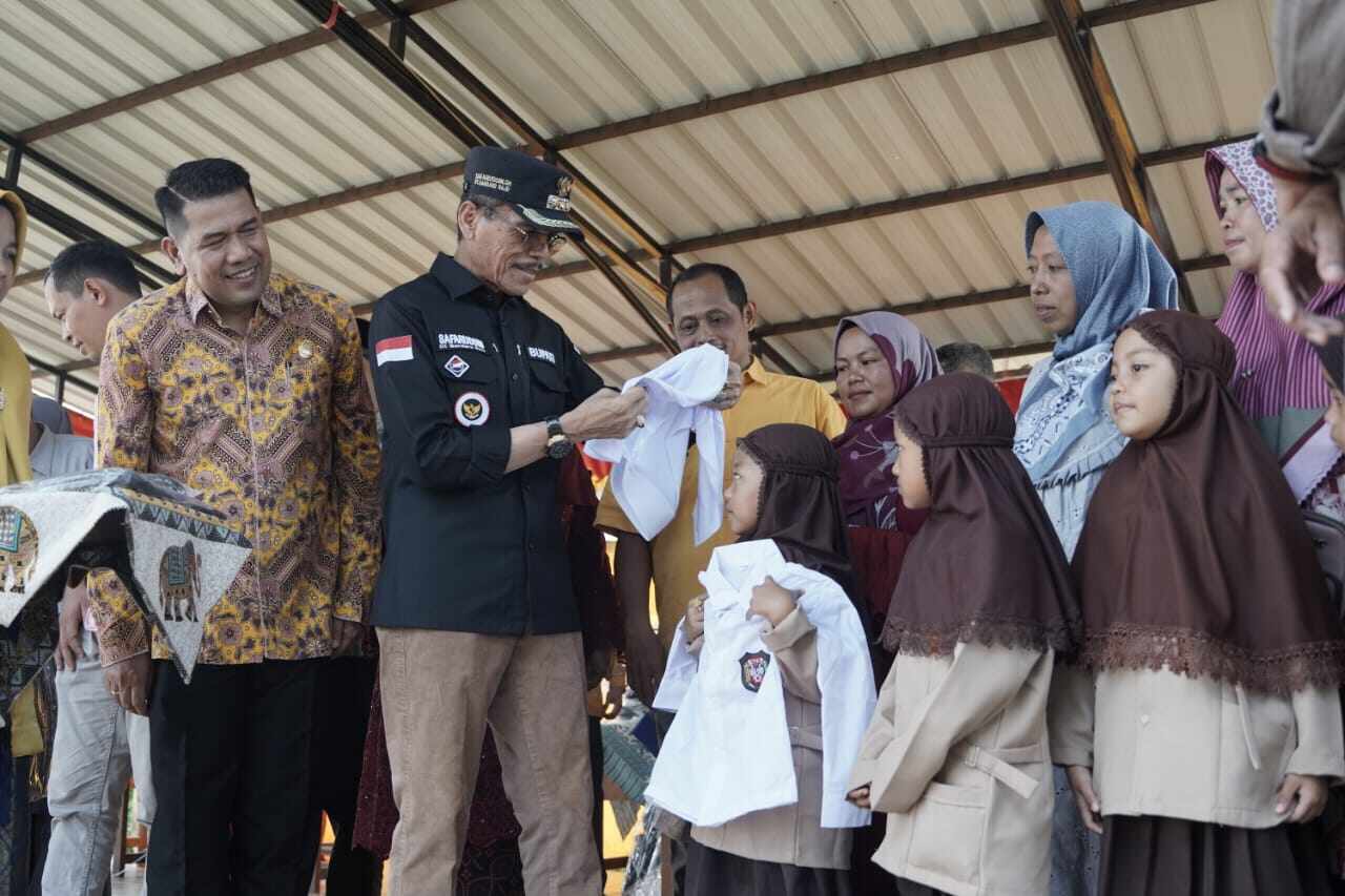 Menurutnya, penyerahan perlengkapan sekolah untuk siswa kelas 1 SD dan kelas 7 SMP, terdiri dari baju, celana, tas, topi, ikat pinggang dan dasi secara gratis ini adalah bukti komitmen pemerintah daerah terhadap segala program yang telah dijanjikan kepada masyarakat. “Program bantuan seragam ini kami yakini akan meringankan beban masyarakat serta mampu menjawab keraguan masyarakat terhadap realisasi program unggulan ini,” tambahnya.