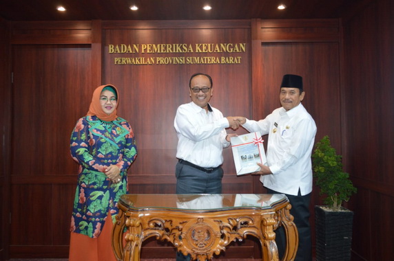 Bupati Sijunjung Yuswir Arifin dan Ketua DPRD Yusni Darti secara bergantian menerima laporan hasil pemeriksaan dari Ketua BPK Perwakilan Sumbar, Pemut Arya Wibowo. Ada tiga dokumen laporan hasil pemeriksaan BPK atas laporan keuangan Pemerintah Daerah Kabupaten Sijunjung tahun 2018.