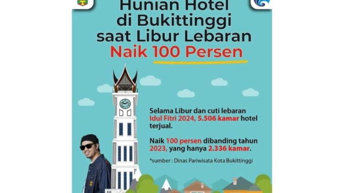 Bukittinggi, Editor.- Pemko Bukittinggi mencatat tingkat kunjungan wisatawan selama libur lebaran idul Fitri 1445 H menurun dibandingkan tahun lalu, namun tingkat hunian hotel meningkat 100% persen