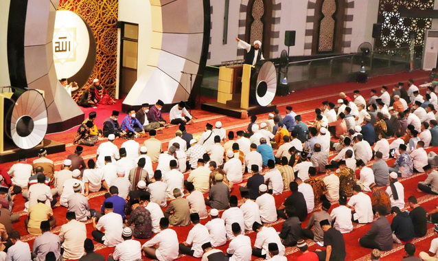Ratusan ASN yang hadir tampak terkesima mendengarkan nasihat-nasihat secara blak-blakan yang disampaikan Ustad Derry.