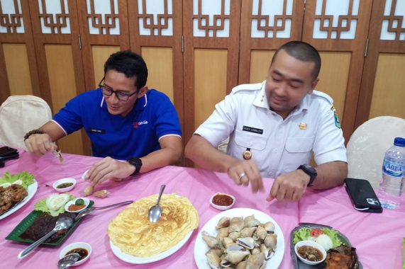Batam, Editor.- Pertemuan tidak diduga Wakil Gubernur Sumatera Barat Audy Joinaldy bertemu makan malam bersama Menteri Pariwisata dan Ekonomi Kreatif Sandiaga Salahuddin Uno di Rumah Makan Istimewa Yong Kee Soup Seafood Jl. Engku Putri Komp. Ruko Hup Seng Batam Centre, Rabu (30/3/2022).