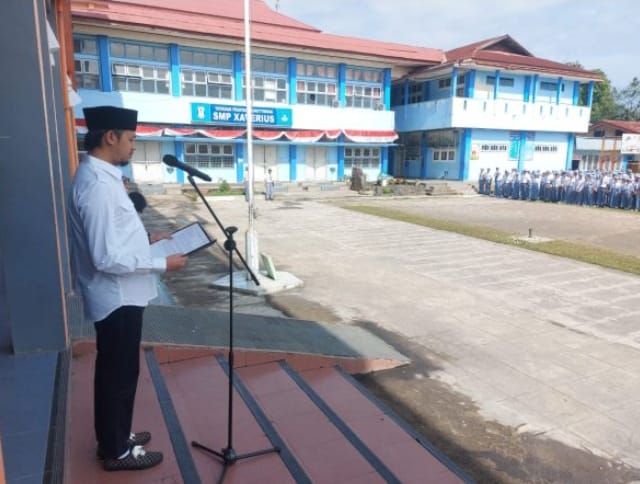 Bukittinggi, Editor.- Walikota Bukittinggi Erman Safar menjadi pembina upacara di sekolah Xaverius, yang diikuti seluruh pelajar yayasan pendidikan prayoga, mulai dari TK hingga tingkat SMA. Senin (26/08).