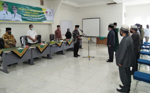 Bukittinggi, Editor.- Wakil Ketua IV Baznas Bukittinggi dilantik Wali Kota Bukittinggi Ramlan Nurmatias di Aula Baznas Bukittinggi, Jum’at (18/09).