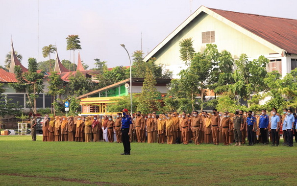 Apel gabungan pasca libur bersama di halaman balaikota Payakumbuh.